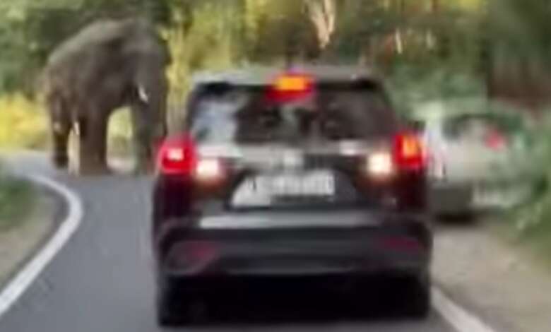 रामनगर वन प्रभाग कोटा रेंज के भण्डारपानी क्षेत्र में एक जंगली हाथी जंगल से निकलकर सड़क पर आ गया। वहां से गुजर रहे लोगों में जहां राह चलते लोगों में अफरातफरी मच गई। वहीं मार्ग से गुजरने वाले वाहनों की रफ्तार थम सी गई। सोशल मीडिया में इसका वीडियो बड़ी तेजी से वायरल हो रहा है। वीडियो और भण्डारपानी क्षेत्र का बताया जा रहा है। वहां से गुजर रहे पर्यटकों ने इसे अपने कैमरे में कैद किया है। बताया गया हे कि बीते दिनों भण्डारपानी में एक जंगली हाथी जंगल से निकलकर सड़क पर आ गया। कुछ देर तक वह सड़क पर खड़ा रहा और हाथी ने कुछ दूर कार के बाहर सड़क पर खड़े लोगों का पीछा भी किया। डर की वजह से लोग भागते नजर आए। बीस मिनट बाद वह हाथी जंगल की ओर चला गया और लोगों ने राहत की सांस ली। बताया जा रहा है कि सड़क के दोनों ओर वाहनों की लंबी लाइन लग गई थी। रामनगर वन प्रभाग के एसडीओ अंकित बडोला ने लोगों से सावधानी पूर्वक चलने की अपील की है। उनका कहना है कि यह वन क्षेत्र है इस मार्ग में वन्य जीवों का आवागमन आम बात है। सुरक्षित और चौकन्ना रहकर चलना ही इस मार्ग पर जरूरी है।