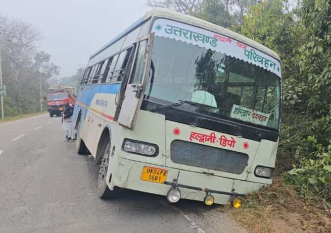हल्द्वानी से देहरादून जा रही उत्तराखंड परिवहन निगम की एक रोडवेज बस गुरुवार को बड़े हादसे का शिकार होने से बाल-बाल बच गई। बेलगढ़ क्षेत्र के पास अचानक सामने आए बाइक सवार को बचाने के प्रयास में बस अनियंत्रित होकर सड़क किनारे कच्चे हिस्से में धंस गई, जिससे यात्रियों में अफरा-तफरी मच गई। बस में उस समय लगभग 25 से 30 यात्री सवार थे।
