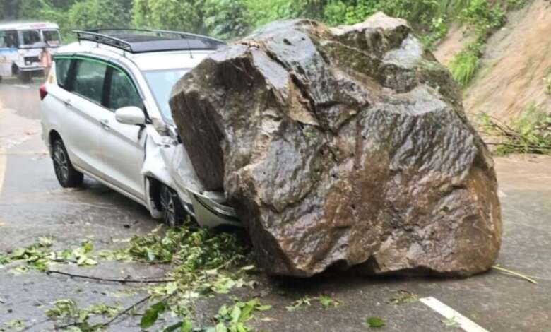नैनीताल के दो गांव क्षेत्र में पहाड़ी से एक बड़ा बोल्डर कार के ऊपर गिर गया। हादसे में एक डॉक्टर समेत तीन लोग घायल हो गए। घायलों को बेस अस्पताल में भर्ती कराया गया है। अपर जिलाधिकारी विवेक राय ने बताया हरिद्वार से नैनीताल जा रहे स्वास्थ्य विभाग की टीम की गाड़ी पर अचानक बोल्डर गिर गया। जिसमें डॉक्टर समेत दो अन्य घायल हो गए। घायलों को उपचार के लिए हल्द्वानी बेस अस्पताल में भर्ती कराया है। मंगलवार की सुबह ऋषिकुल में तैनात डॉ. नरेश चौधरी, वरिष्ठ प्रशासनिक अधिकारी सुभाष और श्याम कुमार कार से नैनीताल जा रहे थे। स्वास्थ्य विभाग की यह टीम किसी मामले में नैनीताल हाईकोर्ट काउंटर लगाने जा रही थी। इसी दौरान काठगोदाम और नैनीताल के बीच कार पर अचानक पहाड़ी से बोल्डर गिर गया। हादसा इतना जबरदस्त था कि कार के एयर बैग तक खुल गए। हालांकि कार में सवार सभी सुरक्षित रहे। घायलों को एम्बुलेंस के माध्यम से उपचार के लिए बेस अस्पताल हल्द्वानी भर्ती कराया गया।